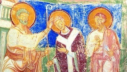 Acts 6: Seven men selected by prayer and the Holy Spirit and by the whole church to ‘deacon’ tables so as to free the apostles to ‘deacon’ the word. Most celebrated was Stephen, who became the first martyr.